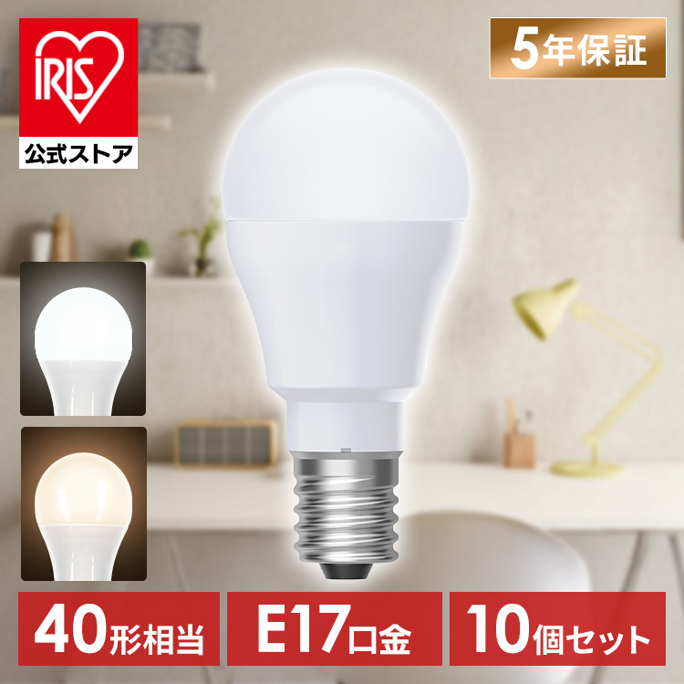 (検索用:10個・led電球・e17・40w・昼白色・電球色・全方向タイプ・5年保証・LED・電球・E17・アイリスオーヤマ・4967576773348・4967576773355・アイリスオーヤマ)