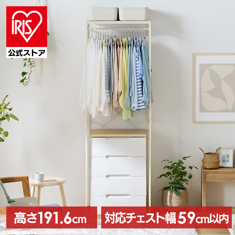 (検索用:ハンガーラック・スリム・パイプハンガー・洋服掛けラック・チェスト上ラック・木目調天板・おしゃれ・韓国・白・ホワイト・ワードローブ・衣類収納・4967576778008・アイリスオーヤマ)
