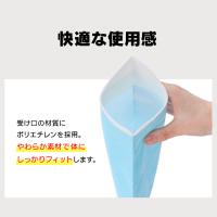 2:尿処理袋の受け口を局部にあてがい、排泄する。
