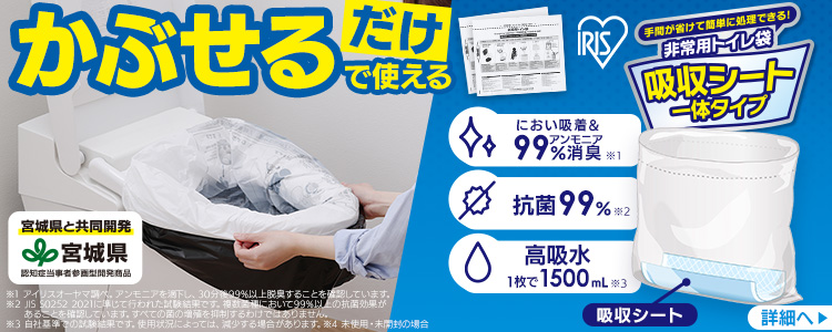 (検索用:非常トイレ・緊急トイレ・防災・凝固量・600ml・3回分・ジッパー付・抗菌・防臭・持ち帰り袋付・個包装・簡易トイレ・男女兼用・非常用トイレ・災害用・避難・車・渋滞・車中泊・キャンプ・レジャー・登山・断水・防災グッズ・非常用携帯トイレ・4967576799454・アイリスオーヤマ)