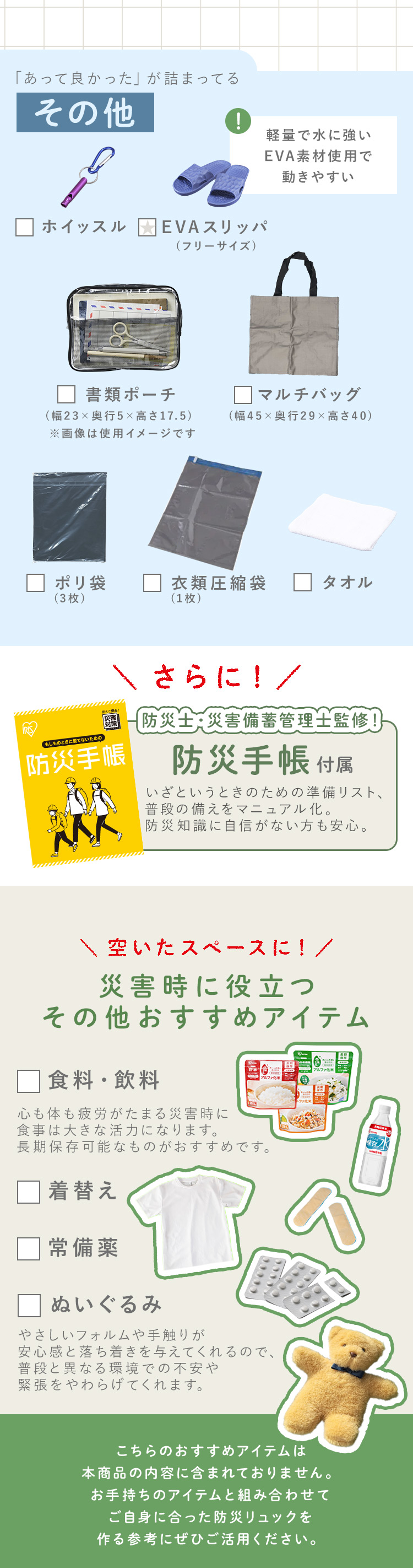 (検索用:防災グッズ・防災・災害・震災・台風・避難・緊急・非常用・備え・セット・カバン・1人用・4967576802802・アイリスオーヤマ)