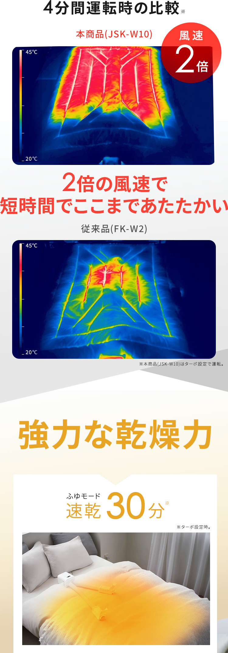 アイリスオーヤマこだわりの立体ノズルが、ふとんの間に空間を作り、隅々まで風を届けます。