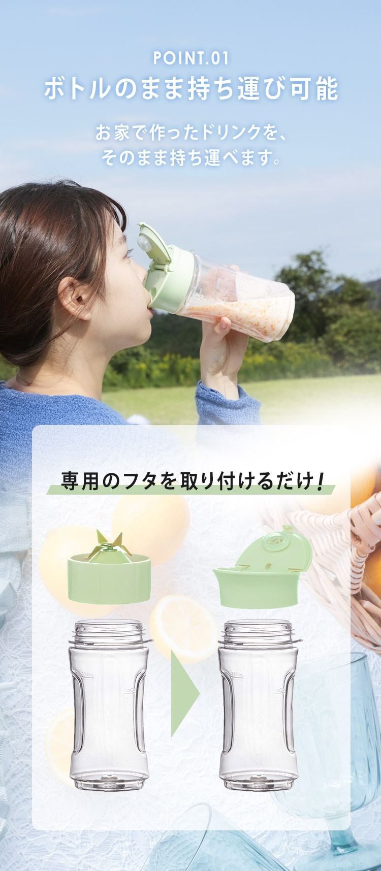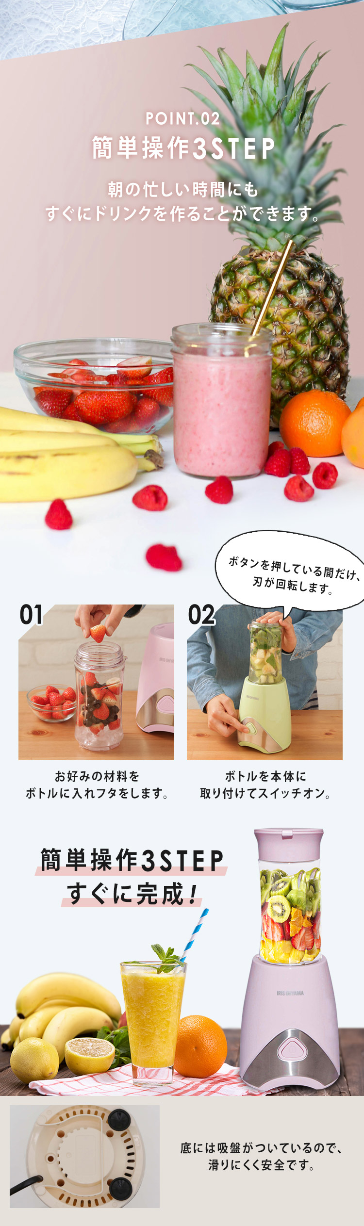 ジュースやスムージーが簡単に作れます。