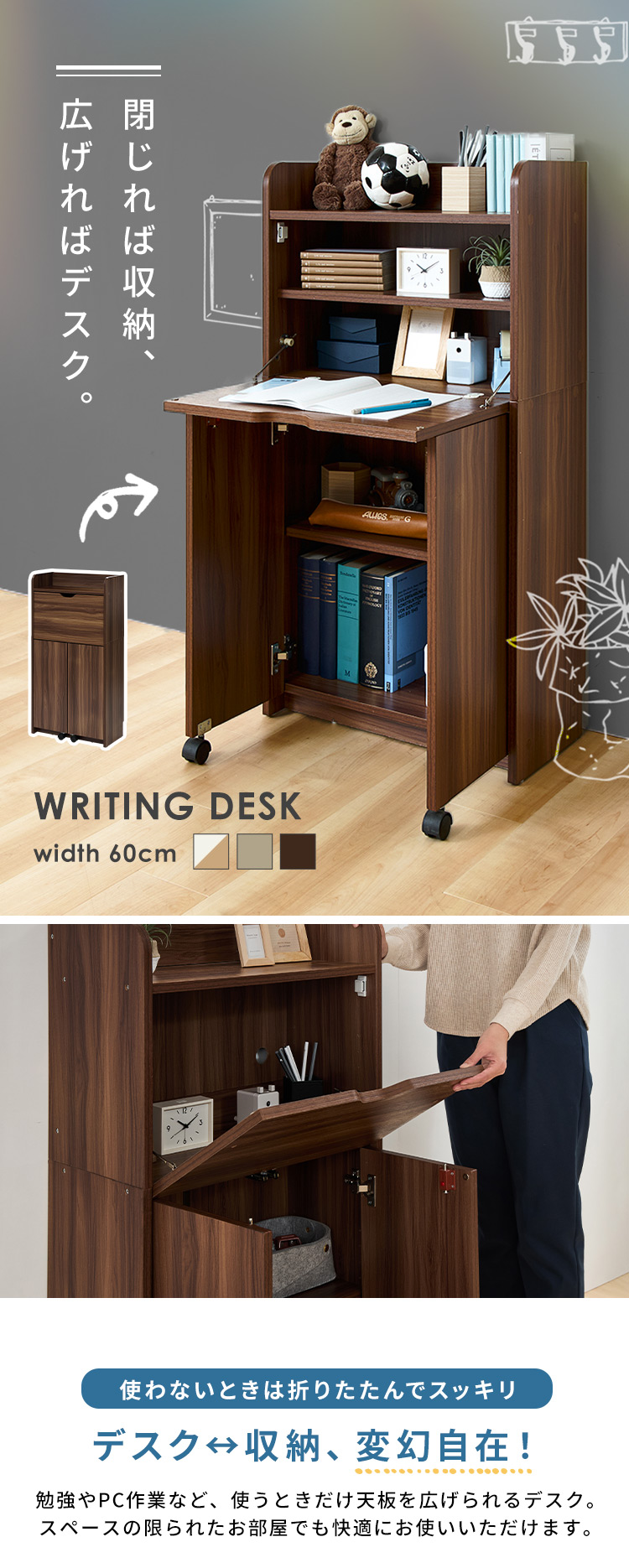 (検索用:折りたたみ 学習机 ライティング コンパクト かわいい 可愛い 折り畳み 幅60cm リモートワーク 在宅 デスク 収納 )