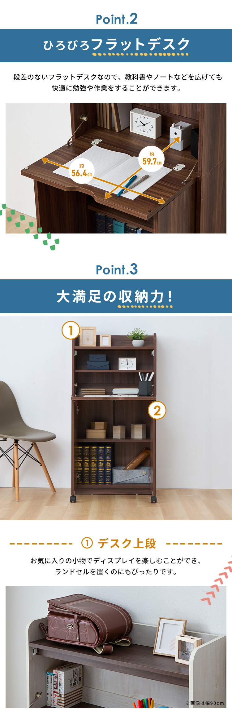 ◇デスクcm:幅約60×奥行約29〜60.5×高さ約115.5→幅約60×奥行約(閉)29-(開)61.5×高さ約115