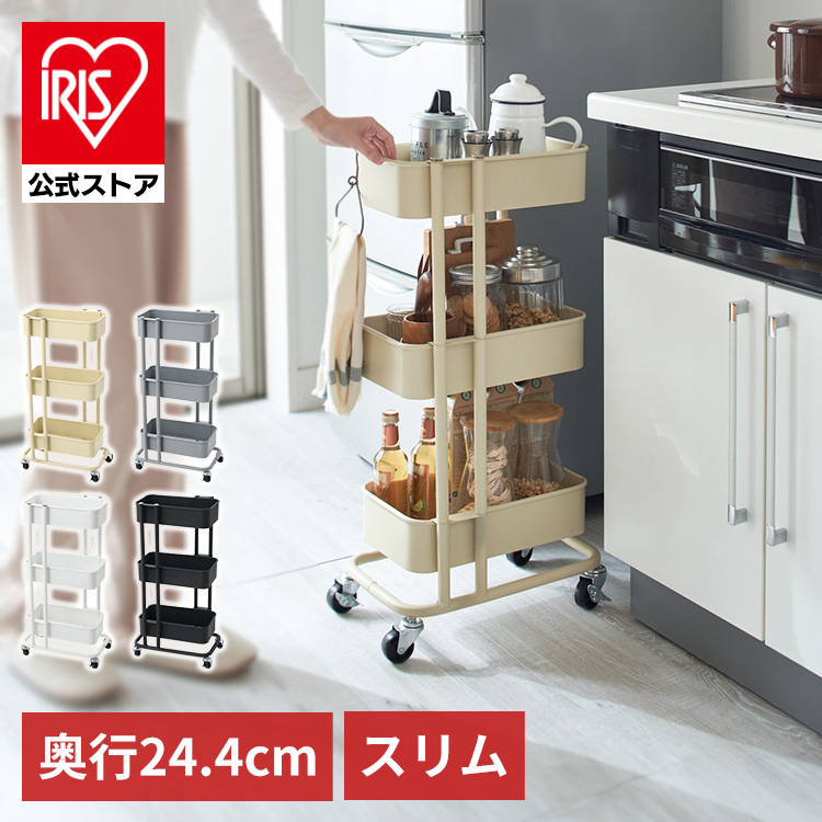 隙間収納にピッタリなスリムタイプのキッチンワゴン。