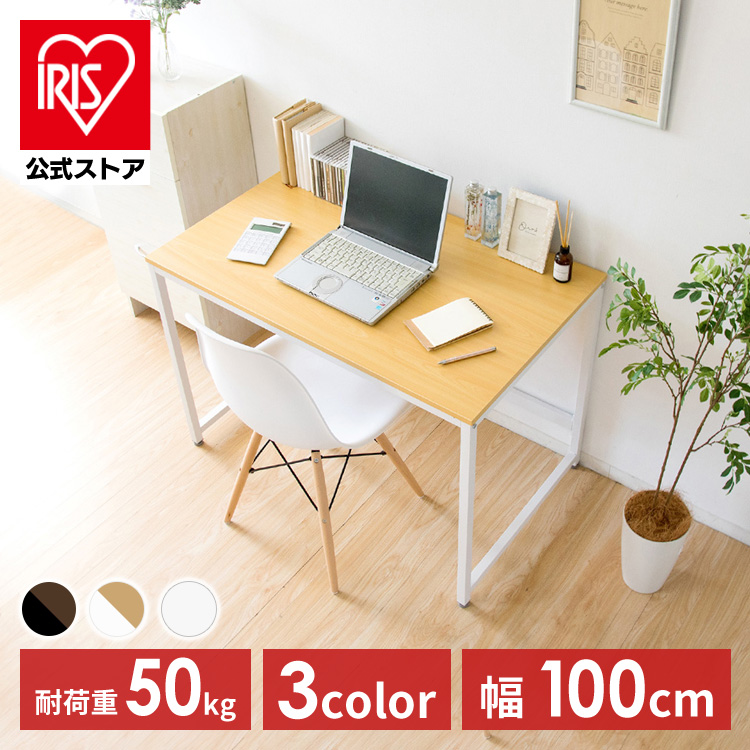 使い勝手が良い幅100cmの天板で作業がしやすいシンプルなデスク。