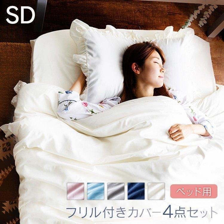 (検索用:寝具カバー・フリル付き・かわいい・ボックスシーツ・掛布団カバー・枕カバー・4点セット・ピーチスキン加工・セミダブル・模様替え・)