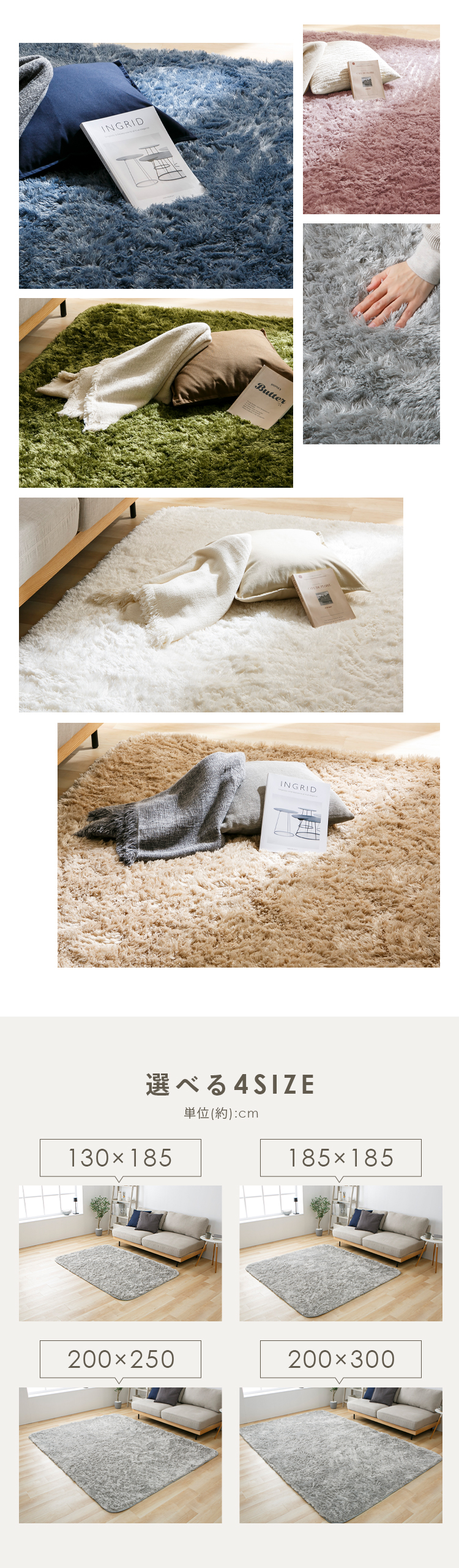 ふんわりとなめらかなシャギーラグです。