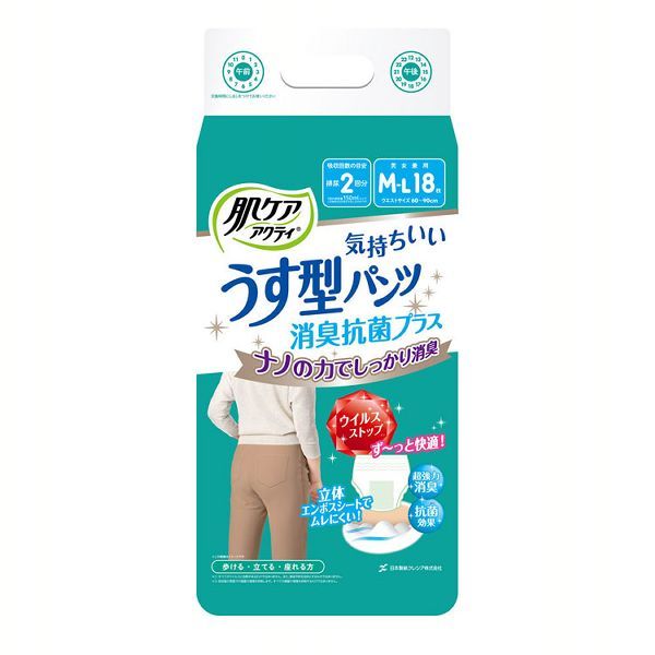 大人用紙おむつ 肌ケア アクティ うす型パンツ 約2回分 消臭抗菌プラス M-L 18枚 80647 日本製紙クレシア