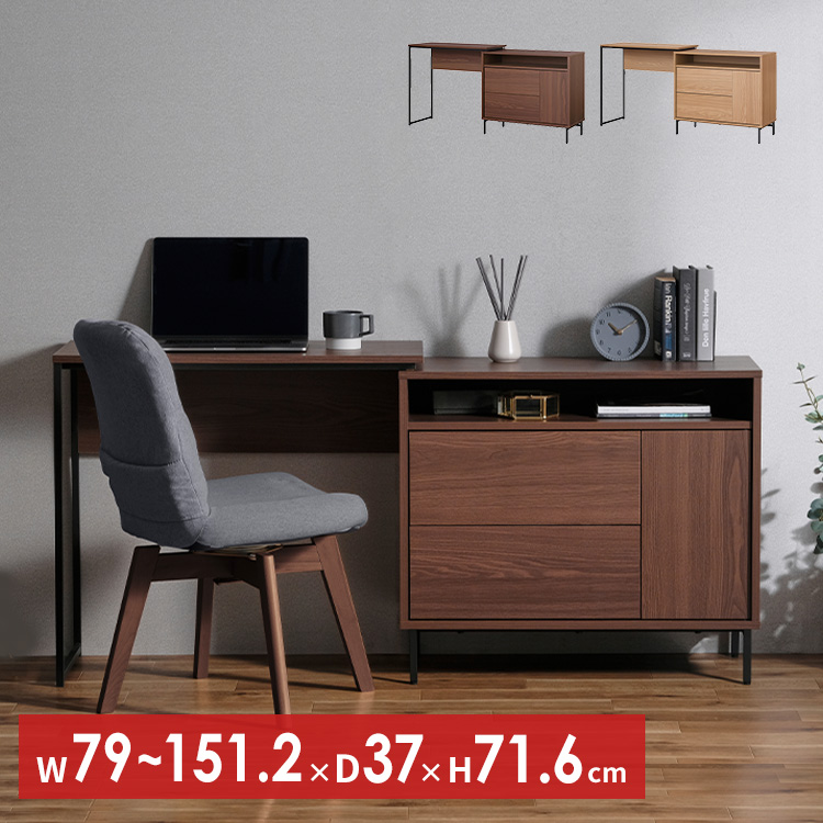 普段はコンパクトなチェストとして、天板をスライドさせれば最大幅151.2cmのデスクとして、使いたいときに自由に設定。