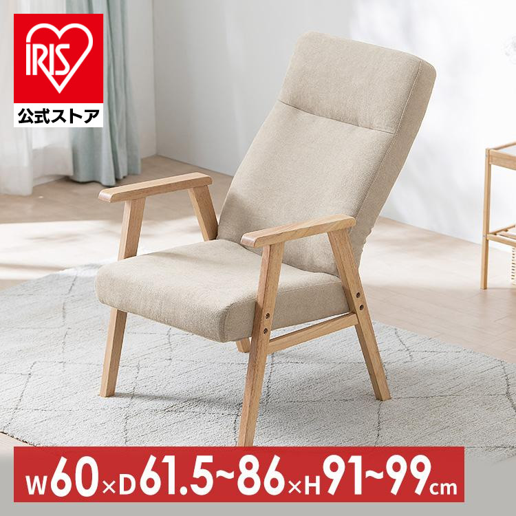 座椅子 肘掛け付き リクライニング ハイバック 高座椅子 椅子 1人掛けソファ イス チェア ファブリックチェア ウッドアームチェア L WACN-L