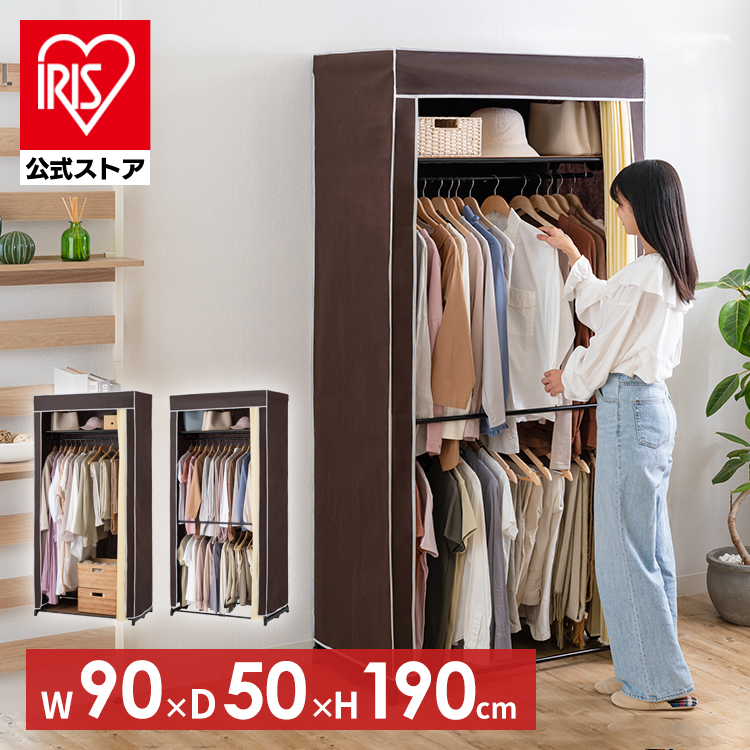 (検索用:ハンガーラック・ワードローブ・クローゼットハンガー・洋服掛け・コート掛け・カバー・カバー付き・衣類収納・幅90・4589978097060・4589978096902)