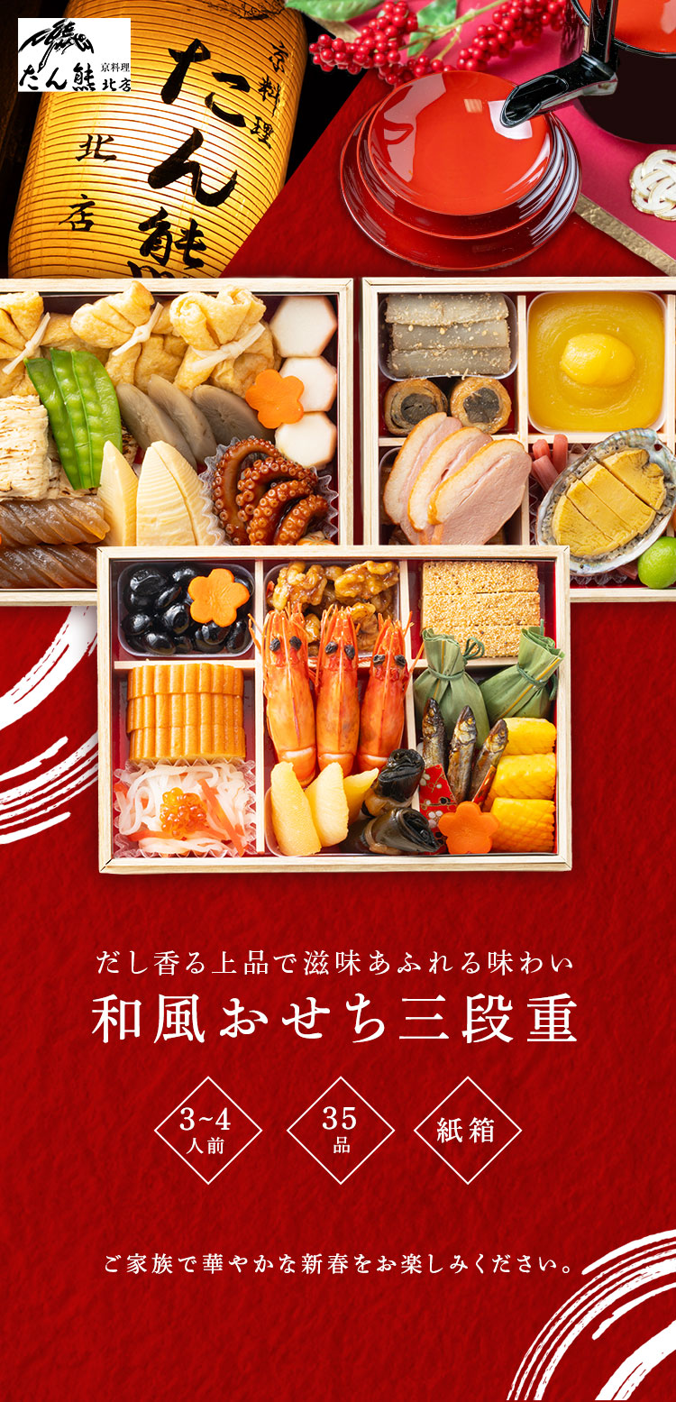 (検索用:おせち料理 おせち 和風おせち 和風 和食 3〜4人前 三段 料亭 たん熊北店 )