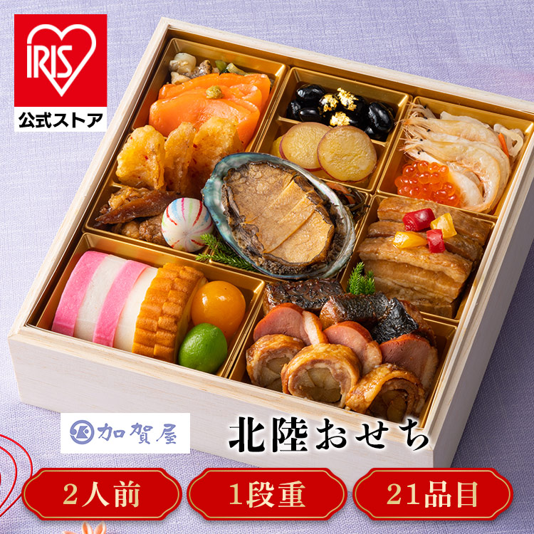 のどぐろや鰤などを使用し、加賀屋監修の味わいを堪能いただけるおせち。大ぶりのあわびが目を引く粋な盛り付けもお楽しみいただけます。人気のきんとんは五郎島金時を使用してコク深い味わいに仕上げています。