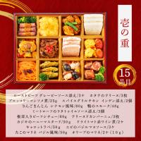 スパイスグリルチキンやビーフシチューなど五島軒の世界観をお重の中で表現しました。りんごのきんとんはアップルパイをイメージしてシナモンをまぶしています。