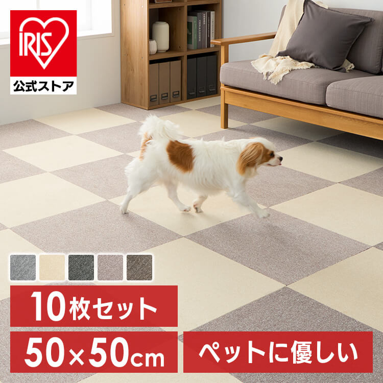 フローリングでは慎重に歩くことで関節に負担がかかりやすいので、タイルカーペットでペットの体の負担を軽減。
