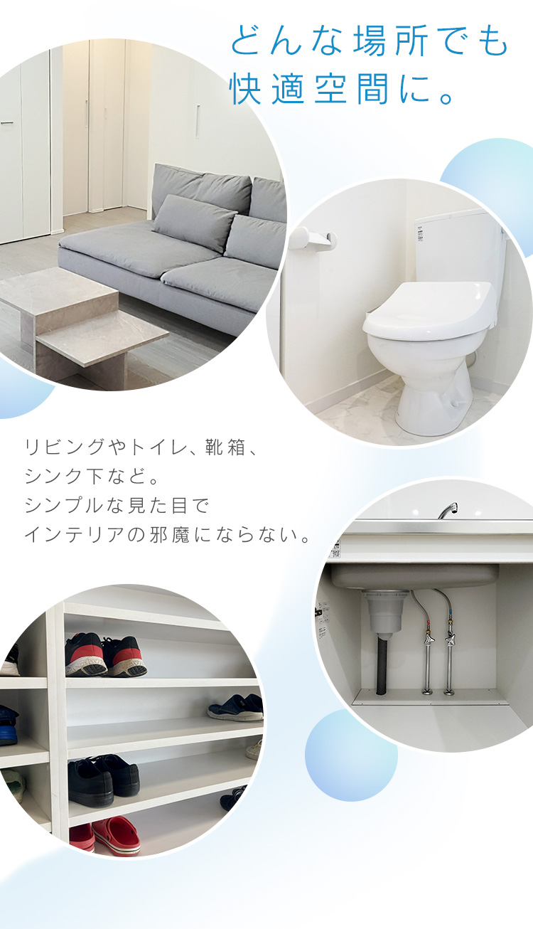 リビングや玄関、トイレなどの様々な場所で使える消臭剤。