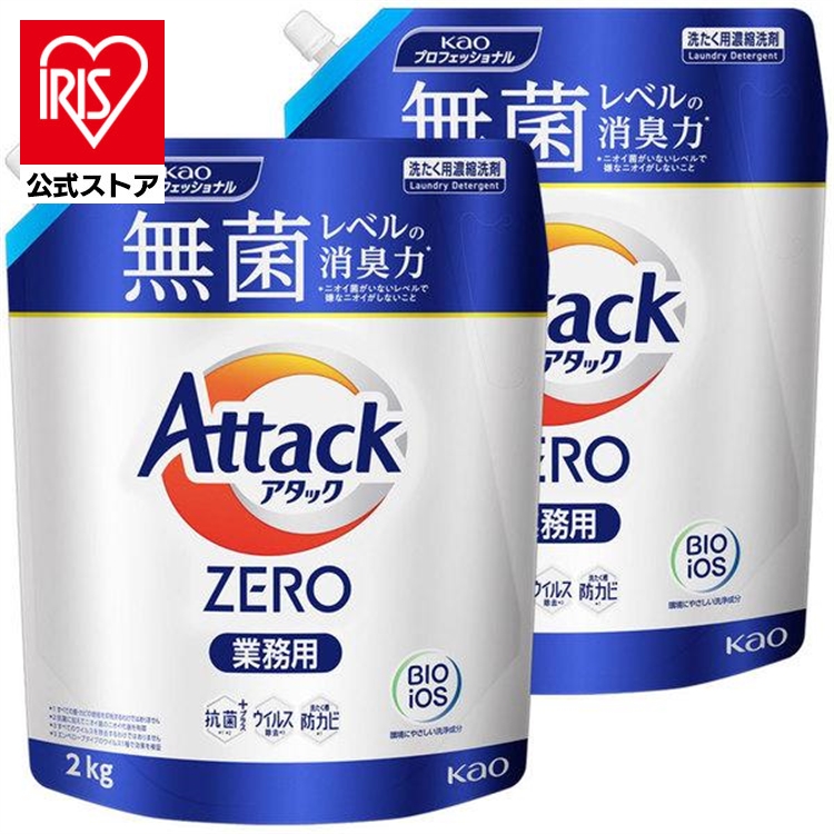 洗濯洗剤 アタックゼロ 洗剤 詰め替え 業務用 2kg アタック 2000g 2個セット 衣料用洗剤 アタックZERO KAO 消臭 抗菌 ウイルス除去 防カビ