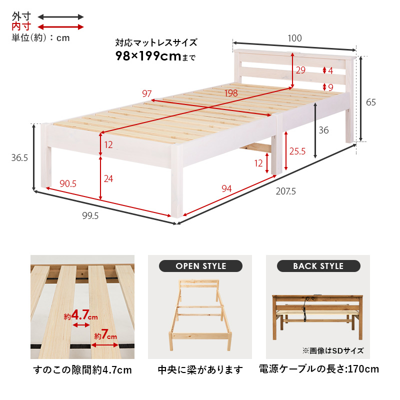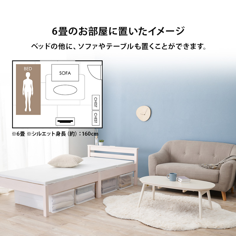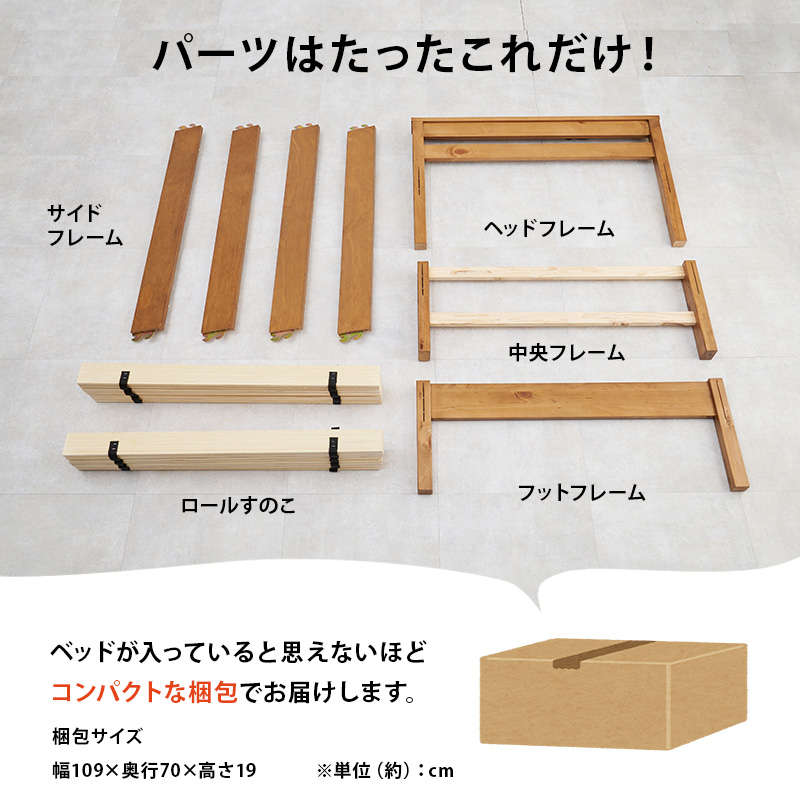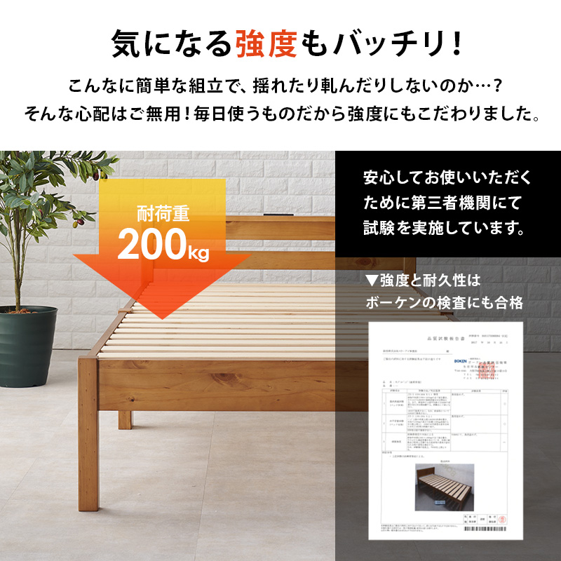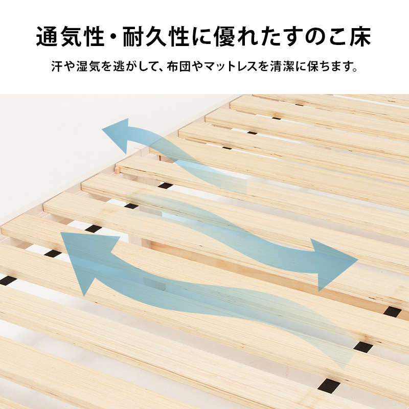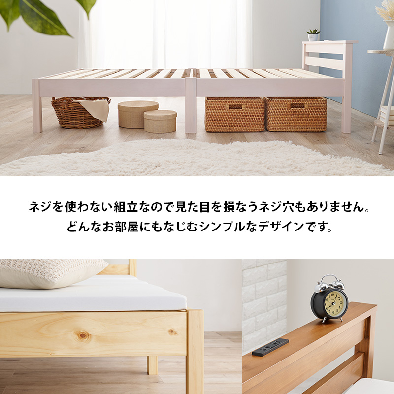 (検索用:ベッドフレーム・工具不要・組立簡単・シングルサイズ・すのこベッド・通気性・パイン材・コンセント2口付き・宮付き・天然木・引っ越し・模様替え・新生活・4934257296540・4934257296533・4934257296526)