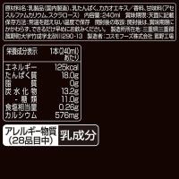 1本(240ml)あたり:エネルギー 125kcal、たんぱく質 18.0g、脂質 0g、炭水化物 13.2g、食塩相当量 0.26g