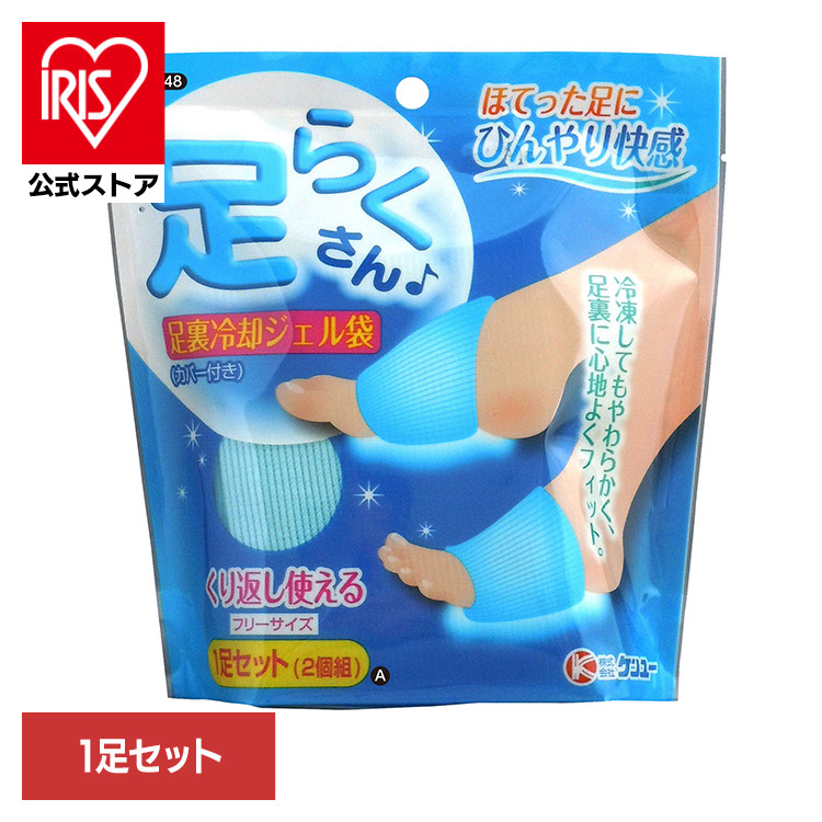 フリーザーで冷やす凍結しないジェル袋を、ニットのカバーにセットして使う商品で、疲れてほてった足に心地よい冷感を与えてくれます。
