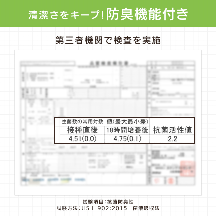 生地:ポリエステル100%防ダニ抗菌防臭加工付き/巻き綿:ポリエステル100%/ウレタンフォーム(凸凹)加工硬さ180N密度18D