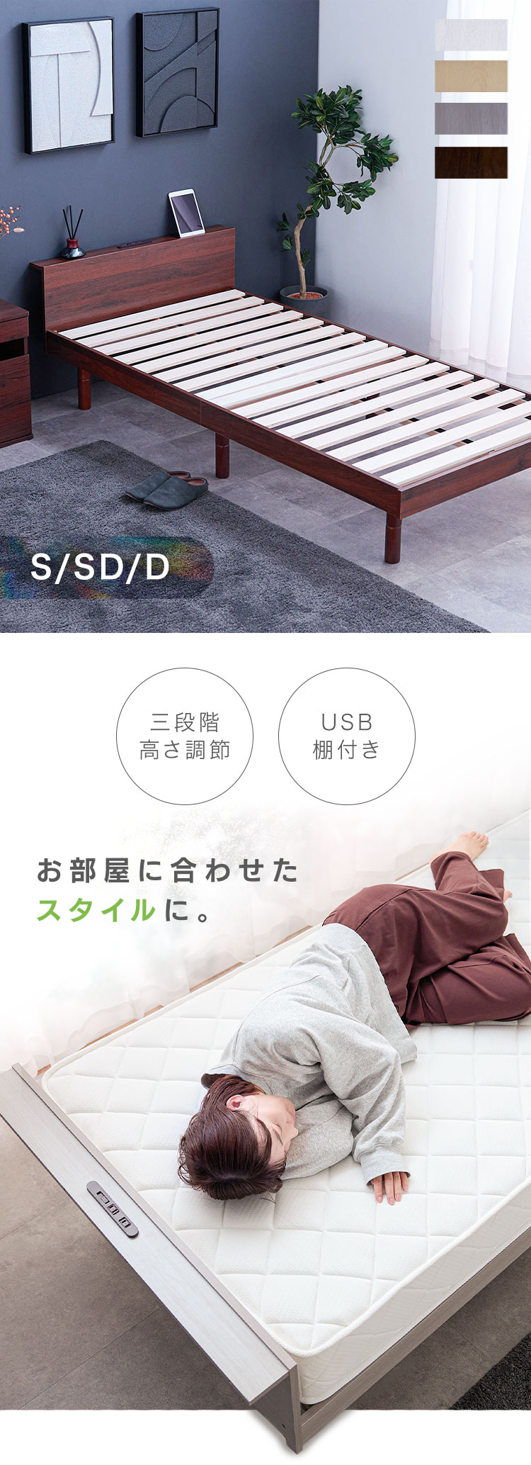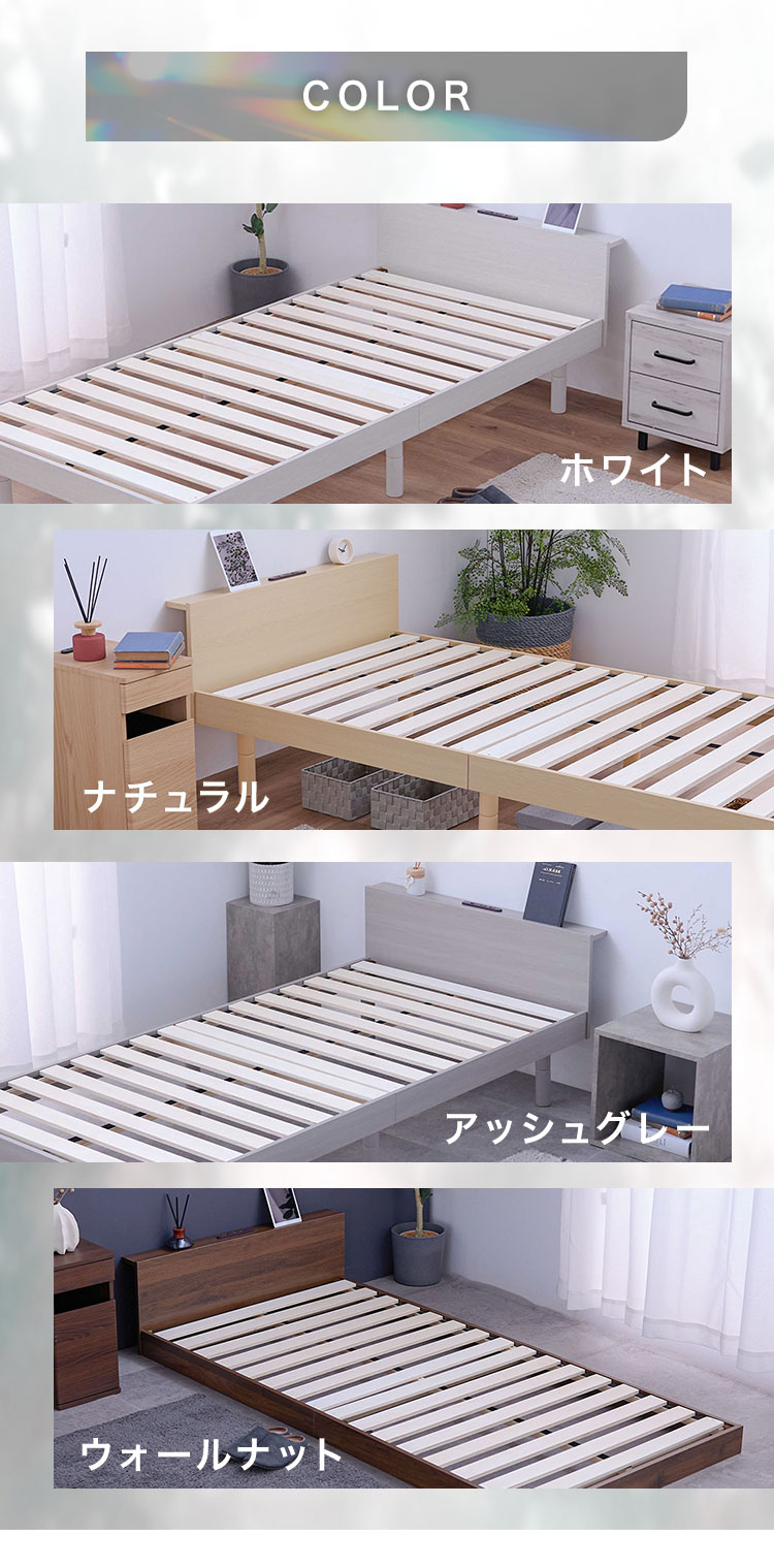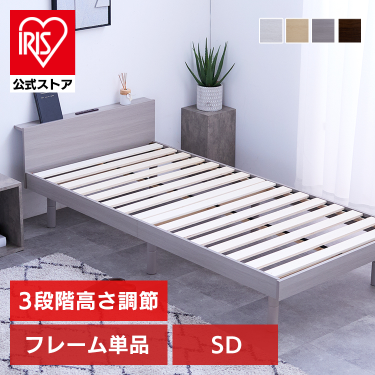 (検索用:ベッドフレーム・セミダブルサイズ・SD・高さ調整・3段階・USBコンセント付き・すのこベッド・棚付き・宮付き・組み立て品・ローベッド・)