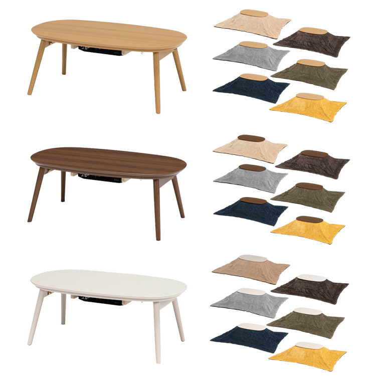 一人暮らしに最適なコンパクトサイズの折れ脚こたつテーブル。なめらかな肌触りのかさばらない掛け布団セット