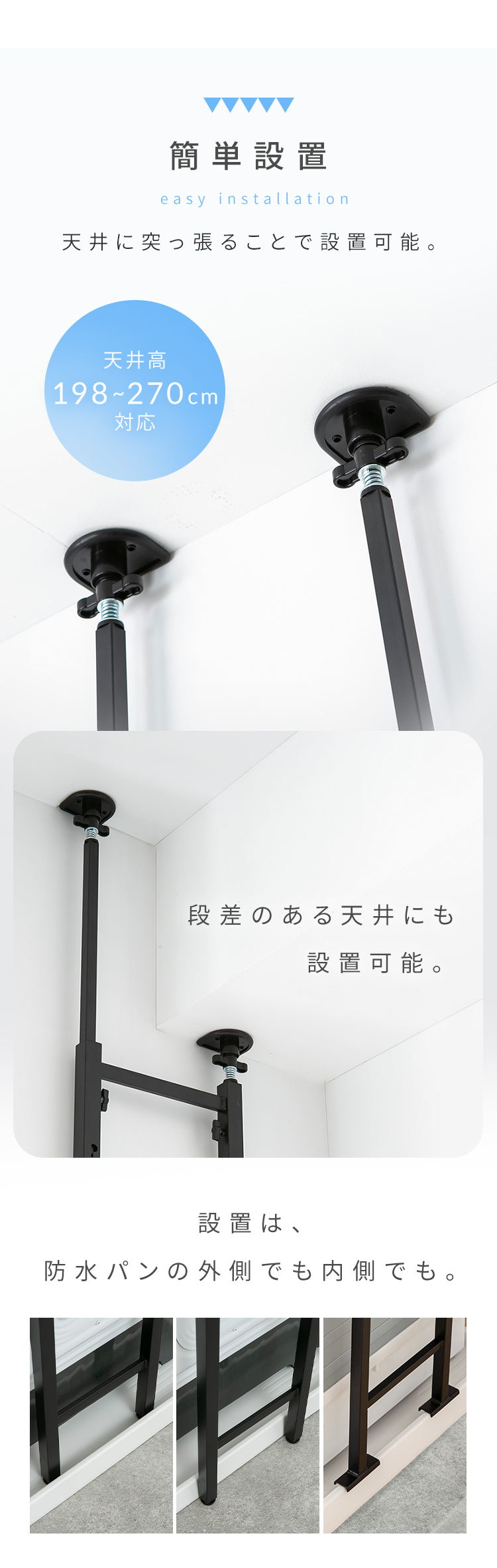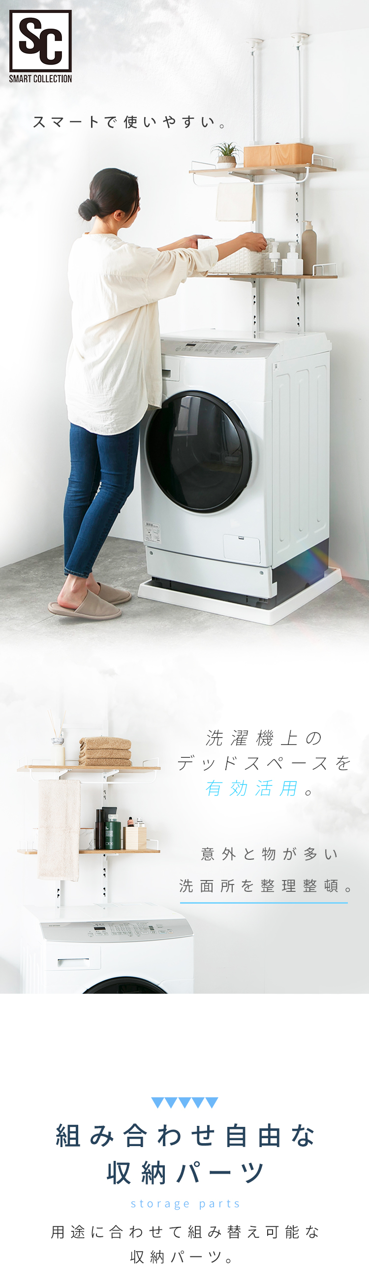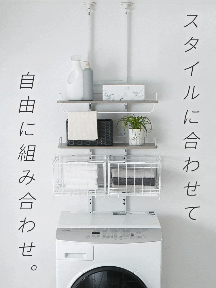 収納に困りがちな洗濯機周りを、有効に活用できる突っ張りランドリーラックです。