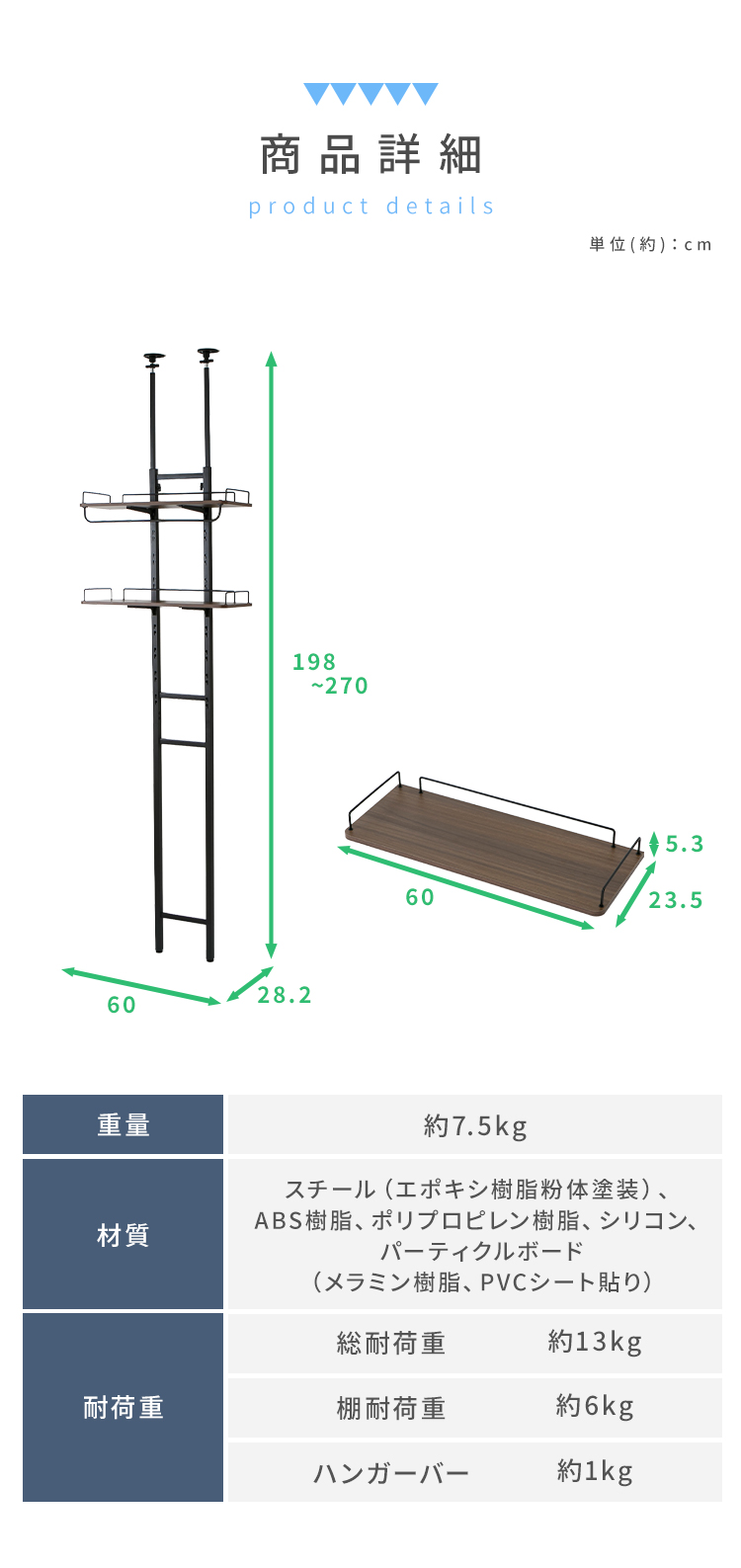 棚1枚あたり6kg、ハンガーバー1kg、全体13kg