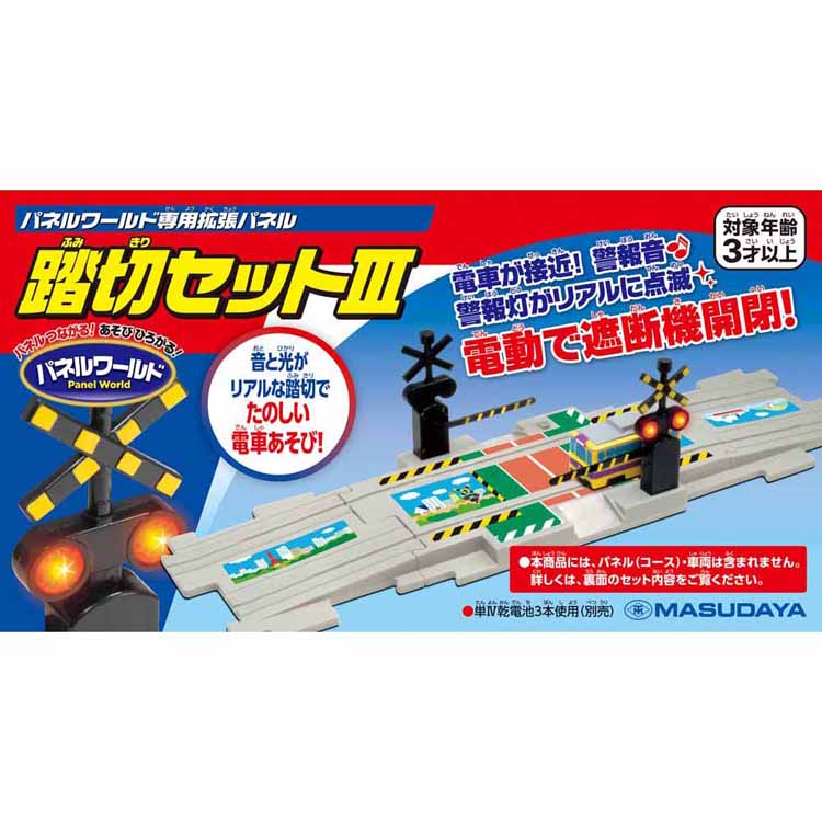 遮断機が電動で開閉! 踏切ランプ点滅、 警報音でリアルな 演出!