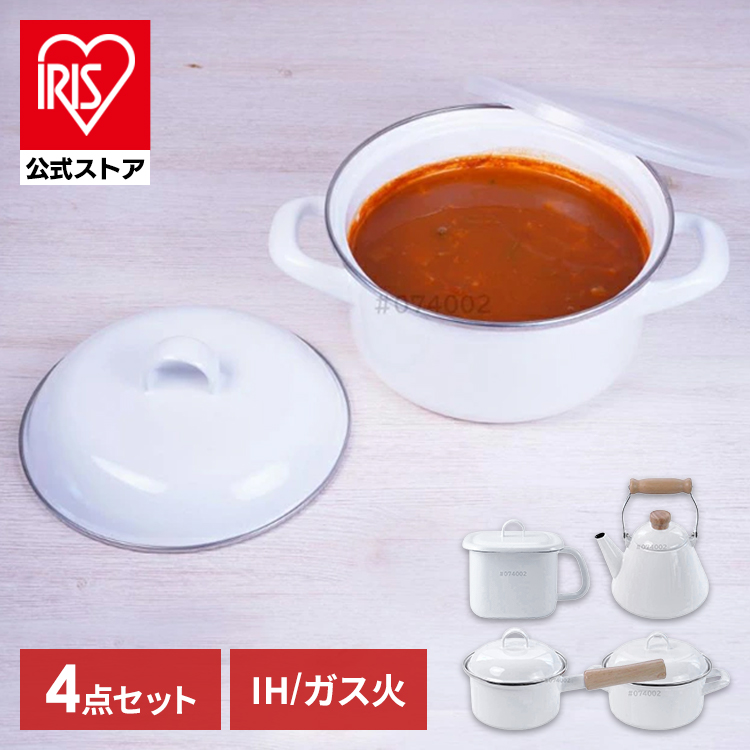 (検索用:琺瑯・ソースパン・キャセロール・味噌ポット・やかん・4点セット・福袋・IH・ガス・ガス火・4977618117719)