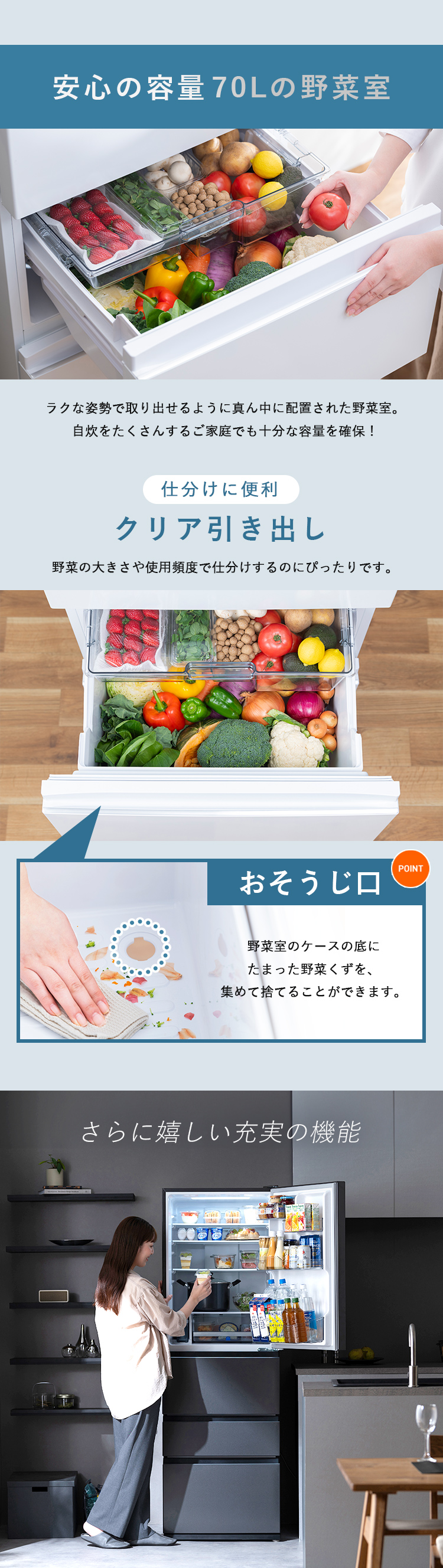 自炊をたくさんするご家庭でも十分な容量を確保!