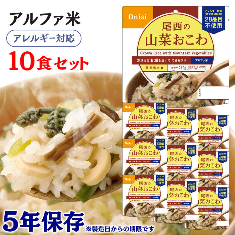 非常食 保存食 アウトドア ごはん ご飯 尾西のアルファ米 山菜おこわ 10食セット 401SE 尾西食品 アルファー食品