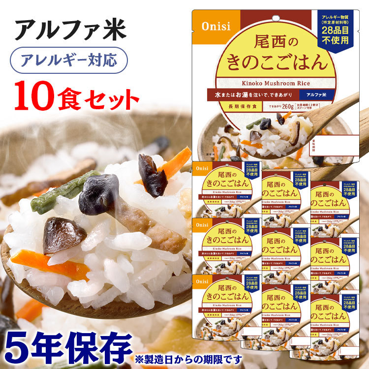 非常食 10食 防災食 アルファ米 きのこごはん 1食100g ごはん きのこごはん 備蓄 災害食 避難食 尾西食品