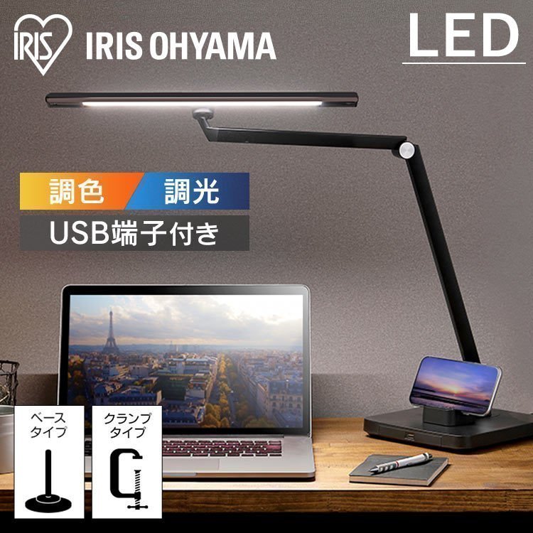 (検索用:LED・デスクライト・T型・ベースタイプ・・クランプタイプ・LEDライト・卓上・ライト・デスク・4967576571340・4967576571357・アイリスオーヤマ)
