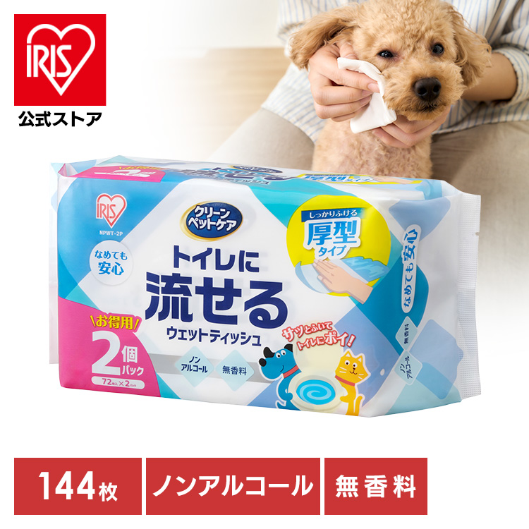 (検索用:ペット用ウェットシート・ウェットティッシュ・ノンアルコール・犬・おしりふき・ペット用・流せる・トイレ・厚手・イヌ・いぬ・ネコ・猫・ねこ・散歩・無香料・クリーンペットケア・汚れ・単品・140枚・144枚・PNWT-2P・NPWT-2P・4967576506366・4967576728287・アイリスオーヤマ)