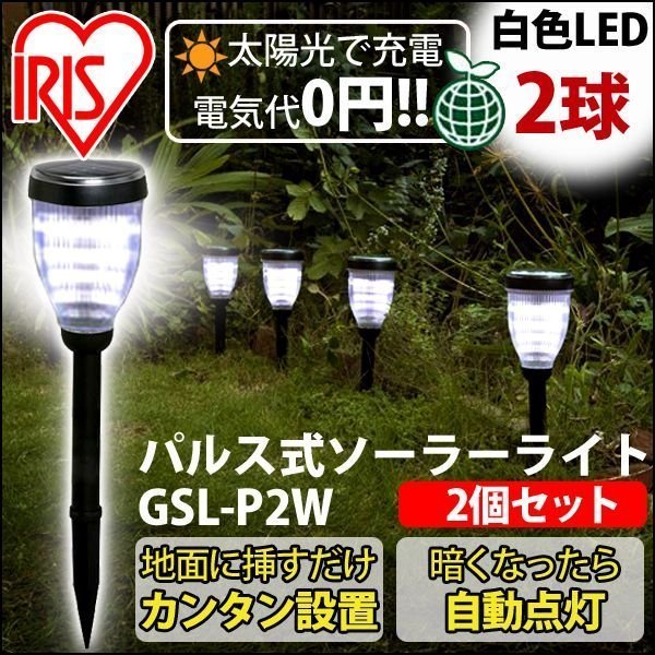 ガーデンライト LED 屋外 ソーラー おしゃれ パルス式 ソーラーライト 明るい 2個セット アイリスオーヤマ