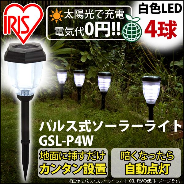 ガーデンライト ソーラー LEDライト 照明 小型 屋外 外灯 庭 ポール LED おしゃれ 自動点灯 パルス式 4球 ソーラーライト アイリスオーヤマ GSL-P4W