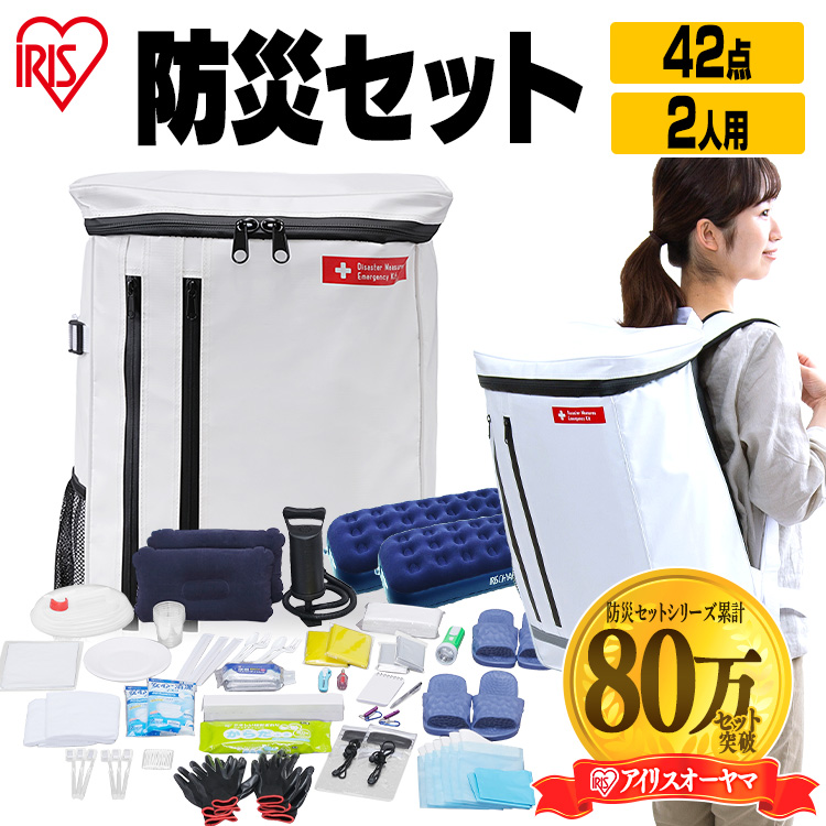 防災グッズ セット 防災リュック アイリスオーヤマ 防災セット 持ち出し 2人用 女性 必要なもの 避難グッズ セット 避難セット 避難リュック 非常用 非常食 42点
