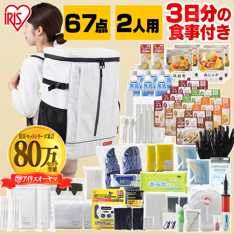(検索用:防災グッズ・防災・災害・震災・台風・避難・緊急・非常用・備え・非常食・保存食・食品付き・セット・カバン・2人用・4967576534130・アイリスオーヤマ)
