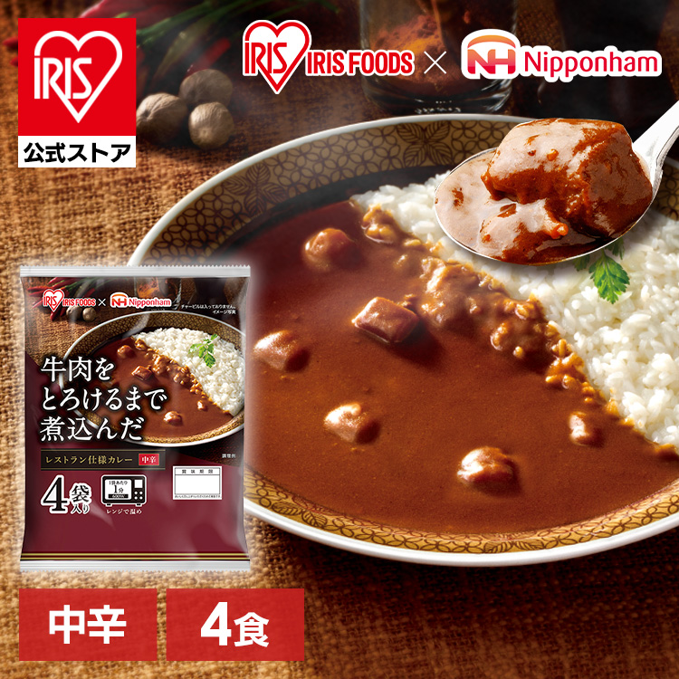 カレー レトルトカレー 牛肉をとろけるまで煮込んだレストラン仕様カレー 170g 4食パック アイリスオーヤマ レンジで1分 簡単 日本ハム