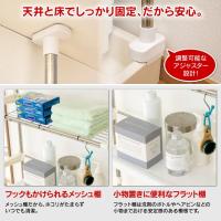 (メッシュ棚:タオルなどの小物置きに、フラット棚:洗剤などの小物置きに)
