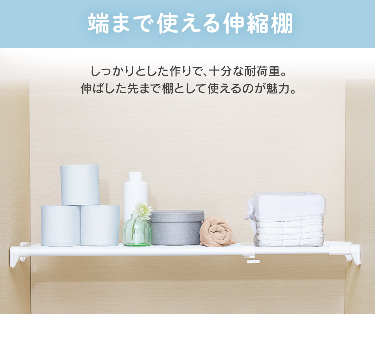 さまざまな場所に取り付けられる、強力伸縮棚。