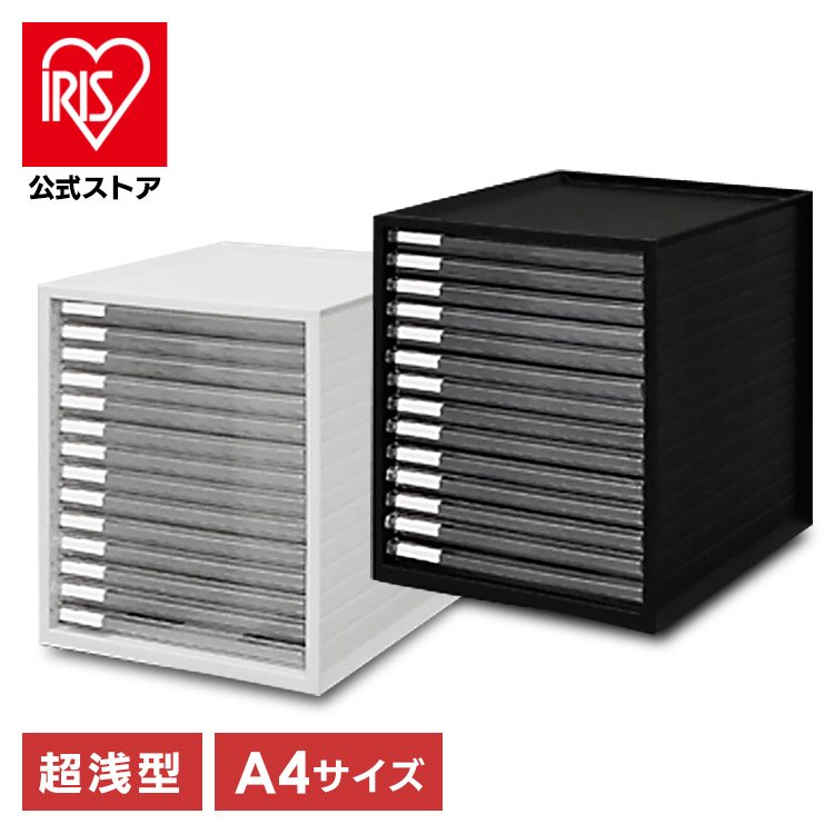 A4サイズの書類の収納に便利な超浅型14段タイプのレターケースです。天板はペンが転がり落ちないような形状になっています。既存のレターケースよりも引き出しが薄くなり、収納力がアップしています。