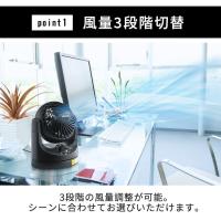 風を浴びたいなら、卓上サーキュレーターがおすすめ。3枚の羽が生み出す直線状の風が、心地よい空間を作り出します。◆ Point1 風量3段階切替3段階の風量調整が可能。シーンに合わせてお選びいただけます。◆ Point2 首振り機能付き65°自動で左右に首振り運転が可能。広範囲に風を届けることもできます。◆ Point3 高い静音性ささやき声よりも静か。※風量「弱」において。◆ Point4 コンパクトサイズ既存の8畳用サーキュレーターマカロン(PCF-MKM15)に比べて、約2/3のコンパクトサイズ。本体重量は約0.9kgと軽量なので、家中どこにでも簡単に持ち運びできお使いいただけます。●電源AC 100V、50/60Hz●消費電力13/11W●電源コード長さ約1.4m●商品サイズ(cm)幅約17×奥行約12.6×高さ約20.9●製品重量約900g(検索用:サーキュレーター・扇風機・ファン・卓上・小型・小さめ・首振り・調節機能・静音・オフィス・デスク・リモート・4967576521222・アイリスオーヤマ)