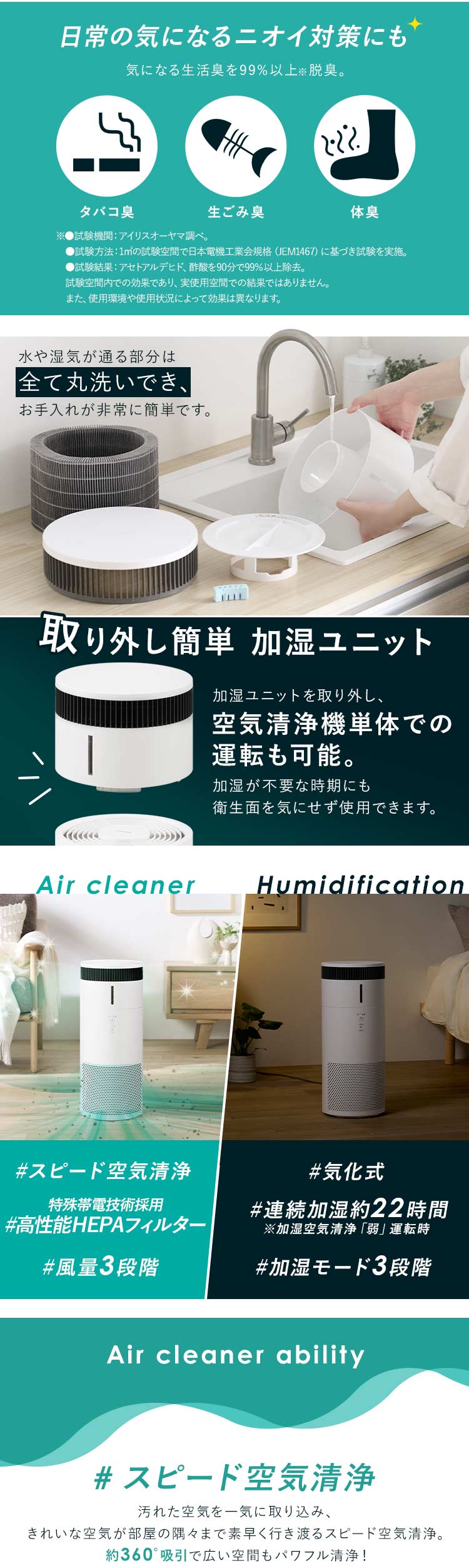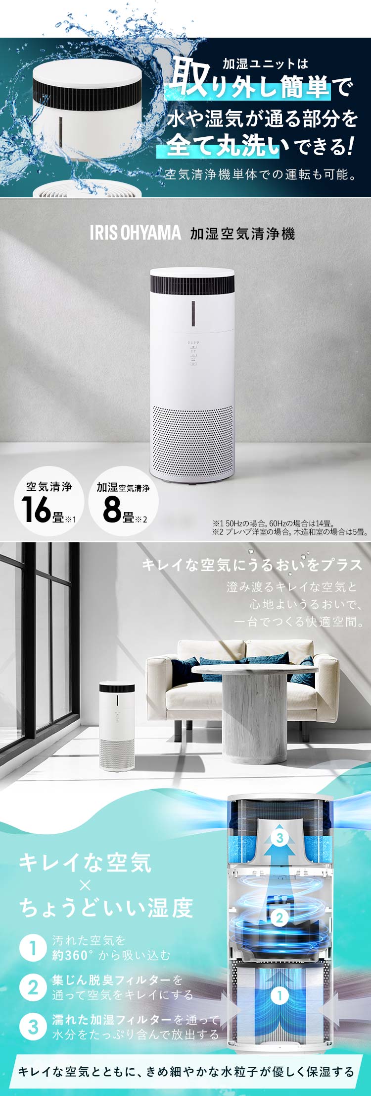 (検索用:加湿・空気清浄機・気化式・加湿器・空気清浄・湿度・保湿・花粉・タイマー・お手入れ簡単・16畳・自動モード・アイリスオーヤマ)