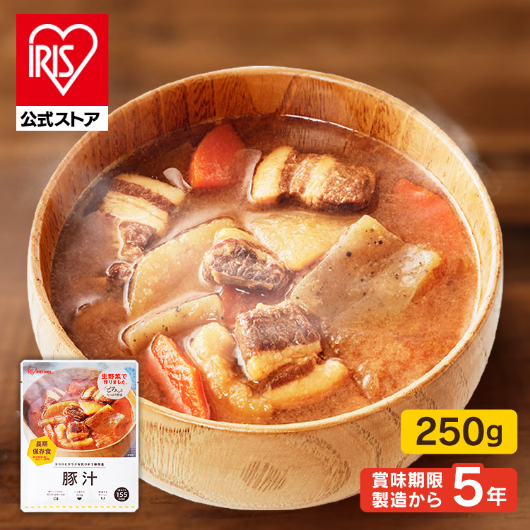 (検索用:豚汁・災対食・防災・備蓄・豚肉・とん汁・味噌汁・みそ汁・やさい・ヤサイ・野菜・非常食・保存食・パウチ・長期保存・防災・食品・防災食・災害食・おいしい・4562403561312・アイリスオーヤマ)