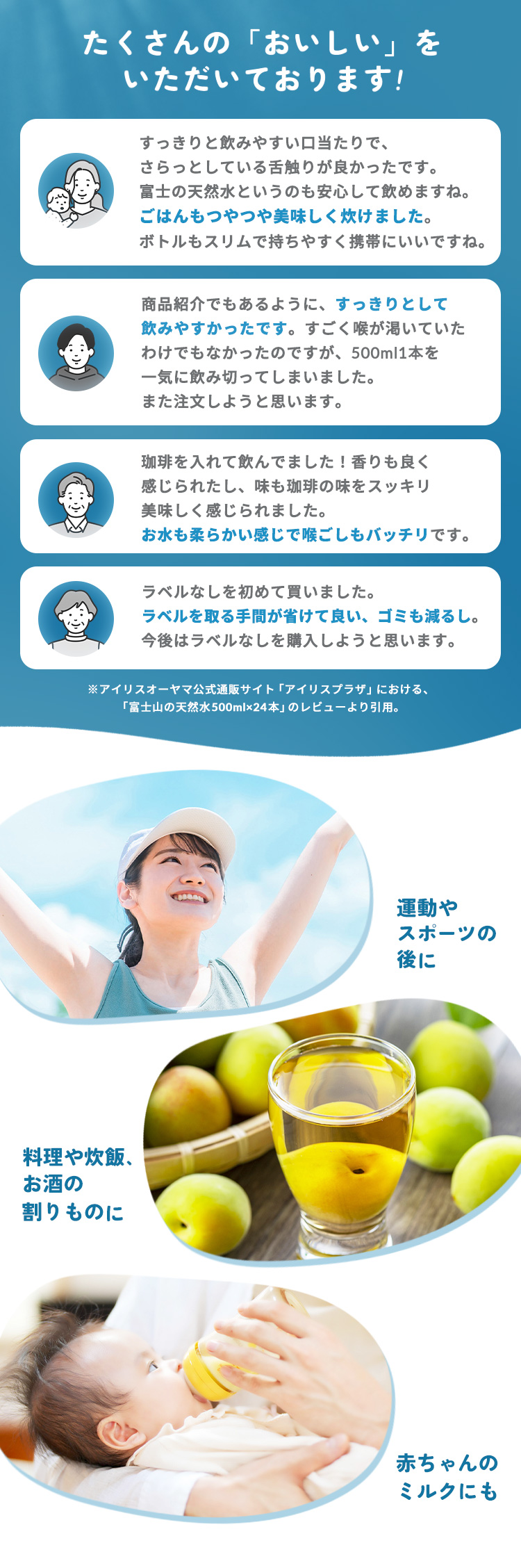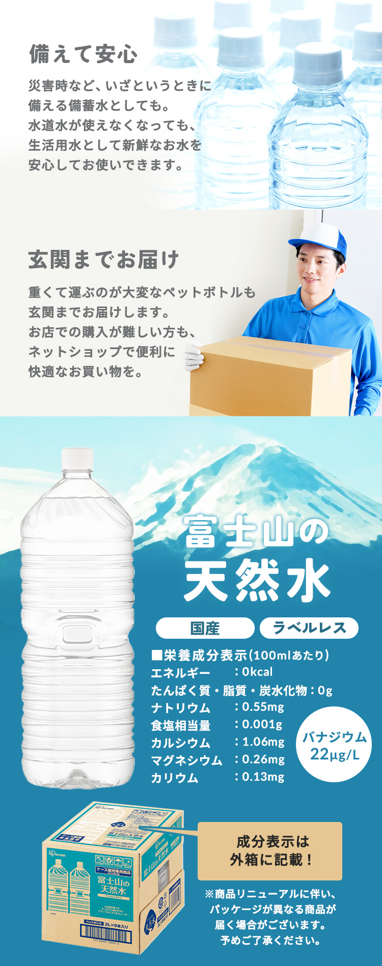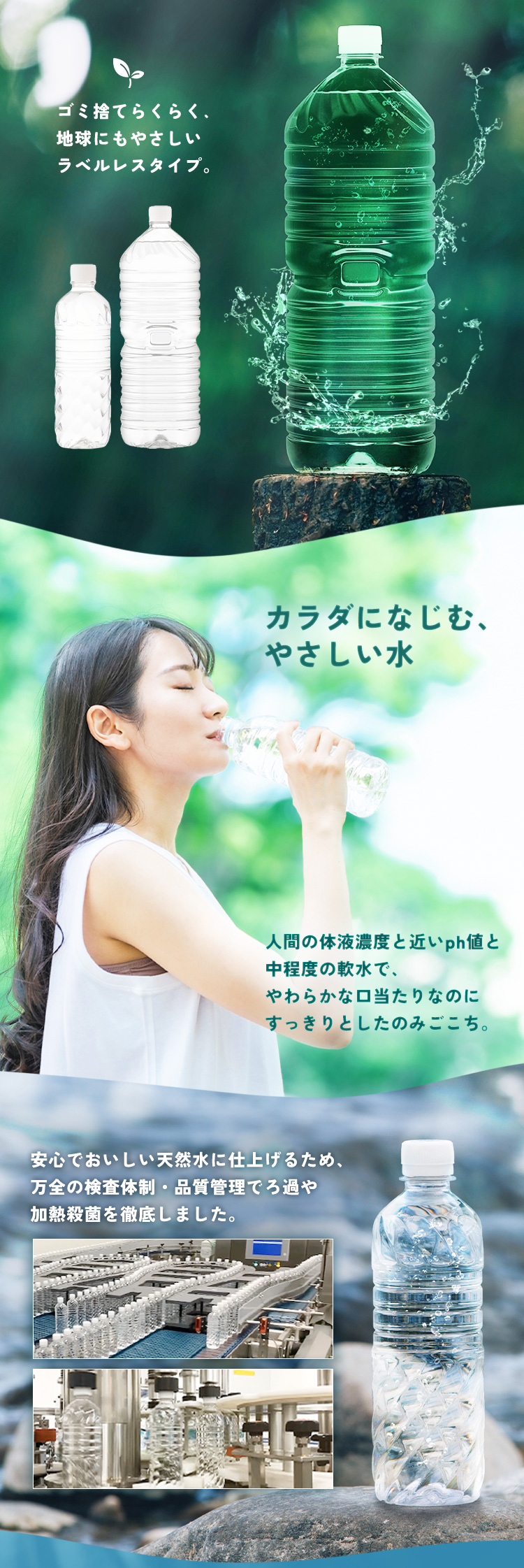 富士山の大自然が育てた、自然の恵みたっぷりのすっきりと飲みやすい天然水です。